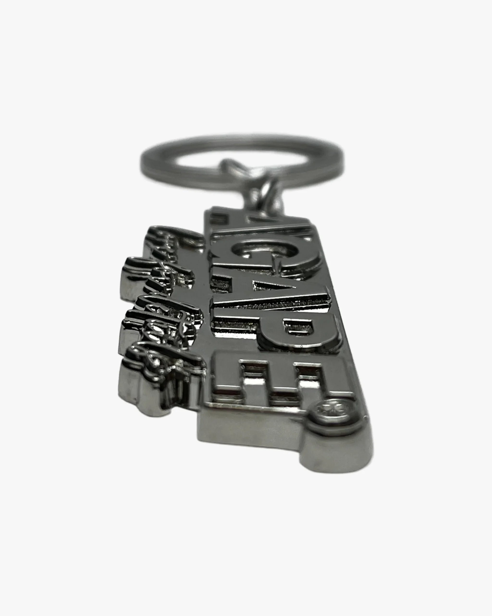 Portachiavi in lega di zinco con logo embossed: elegante e resistente.